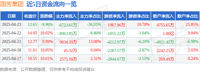 4月23日的资金流向数据方面,主力资金净流出6723.61万元,占总成交额36.55%,游资资金净流入1967.96万元,占总成交额10.7%,散户资金净流入4755.65万元,占总成交额25.85%。